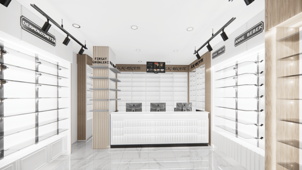 Eczane iç mimarisinde ergonomi, mevzuat uyumu ve kullanıcı deneyimi esas alınarak her projeye özgün çözümler getiriyoruz. Estetik detaylarla sağlık mekânlarını hem işlevsel hem göz alıcı hale getiriyoruz.
